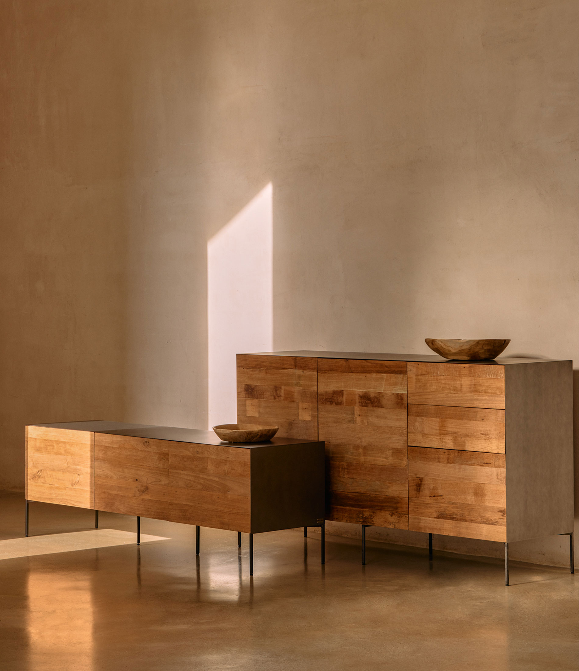 Material: Frente Teca reciclada con estructura acero lacado.