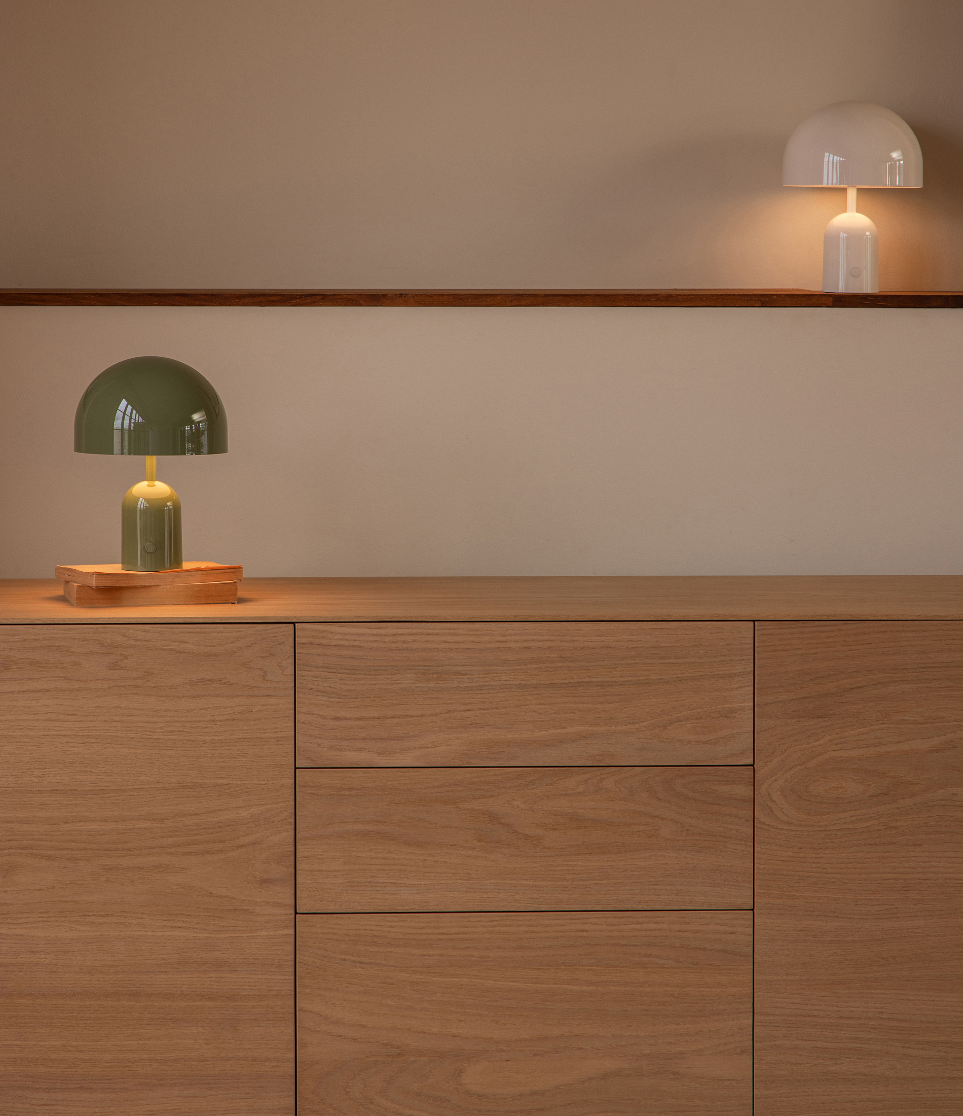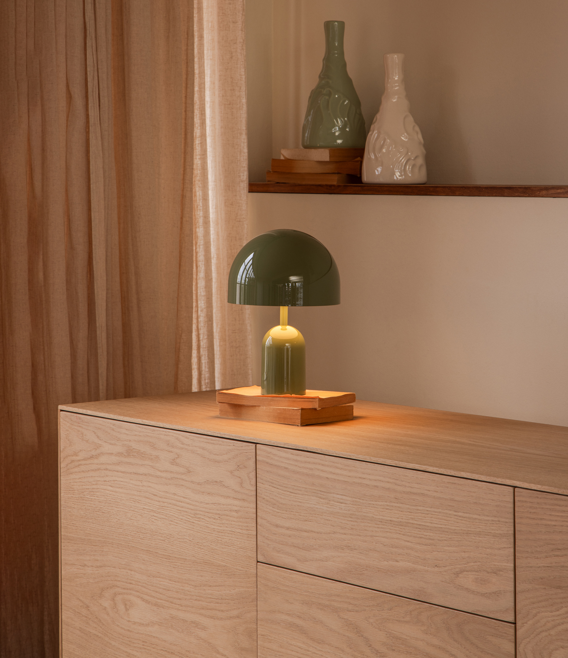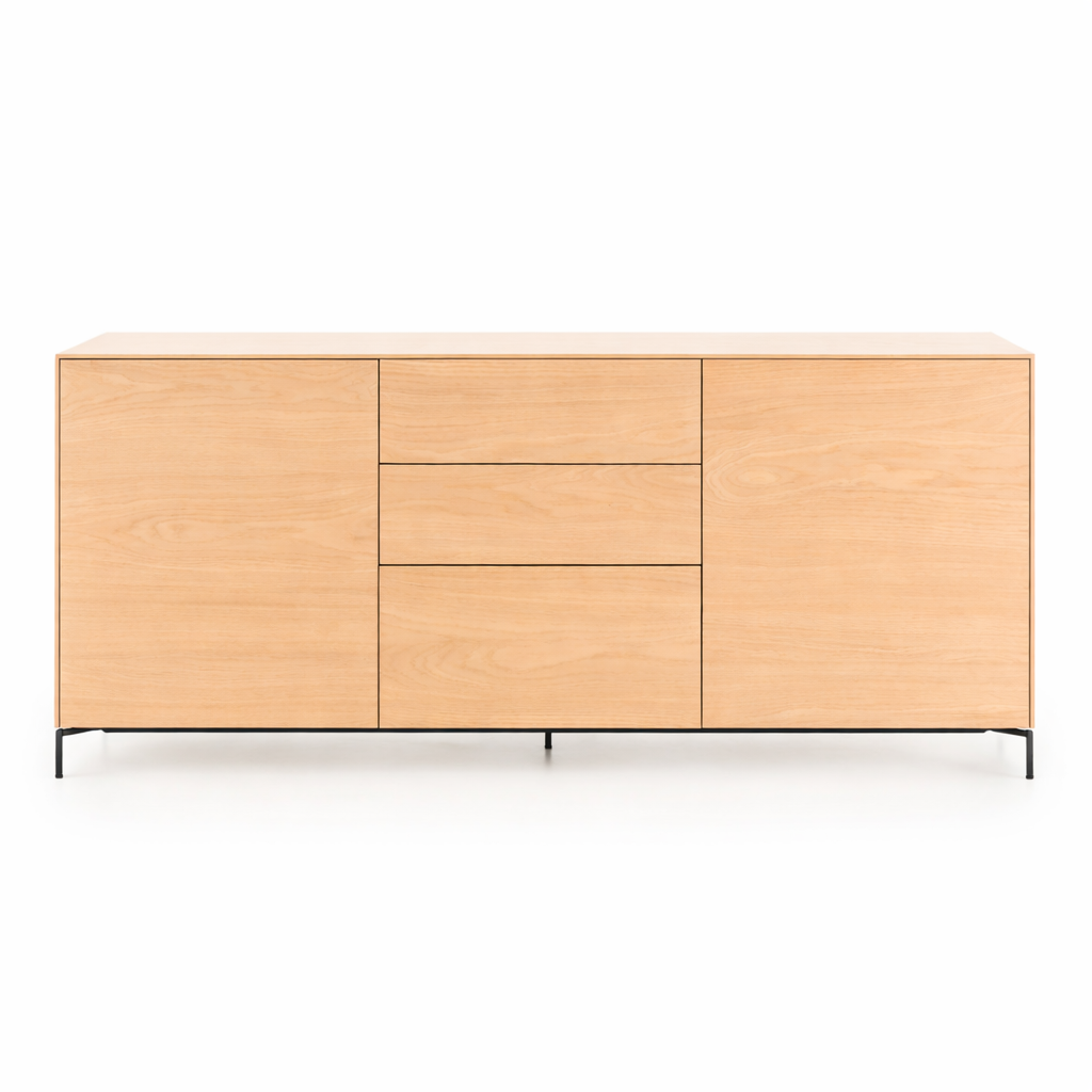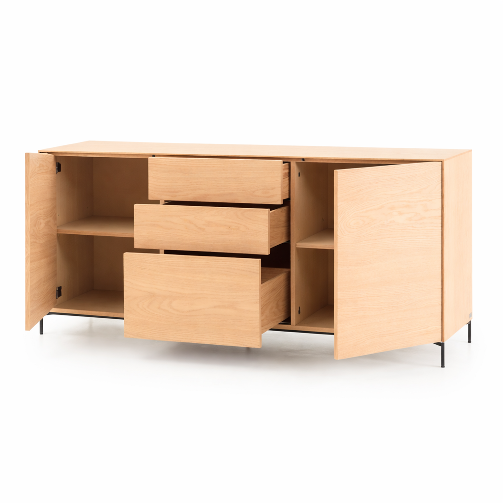 Aparador New Viok madera de roble natural con 2 puertas y estantes interiores y 3 cajones.