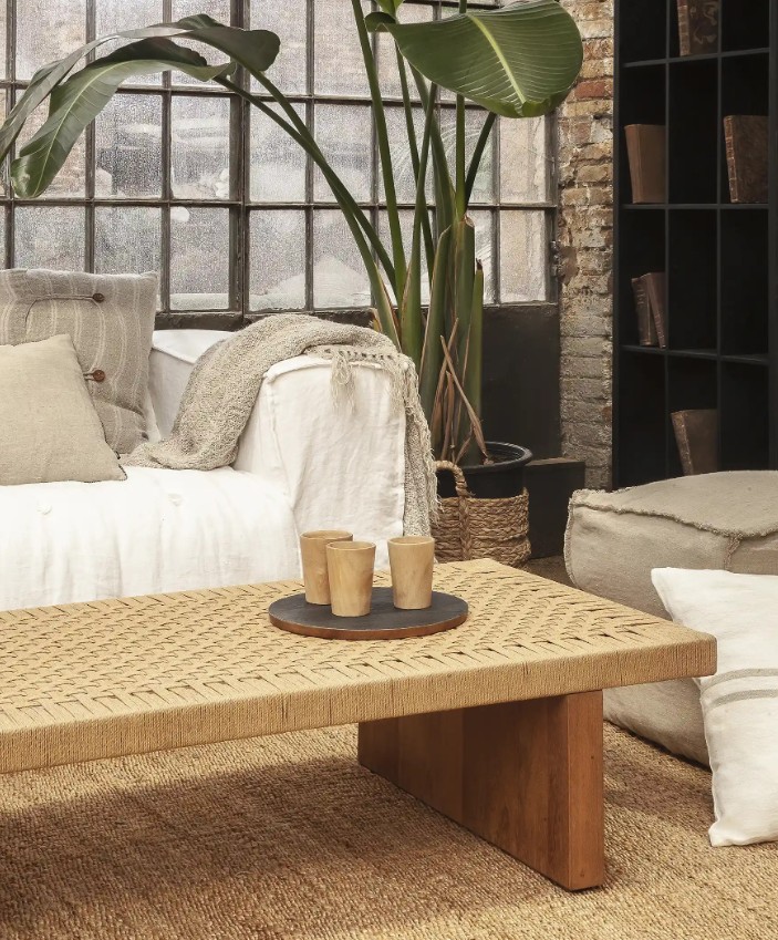Mesa de centro Cora de madera de teca reciclada y cuerda de papel 150 x 70 x 35 cm. La icónica colección Cora es reconocible por la integración de materiales naturales y técnicas artesanales, destacando el uso de madera de teca reciclada y cuerda de papel trenzada a mano. Esta combinación aporta una estética cálida y orgánica a cada pieza. Las líneas rectas y el diseño minimalista de la colección ofrecen una elegancia atemporal, mientras que la variedad de productos que incluye, permite una cohesión estilística en diferentes espacios del hogar. La atención al detalle y el compromiso con la sostenibilidad se reflejan en cada elemento de la colección CORA, proporcionando funcionalidad y estilo en armonía con el medio ambiente.