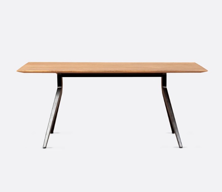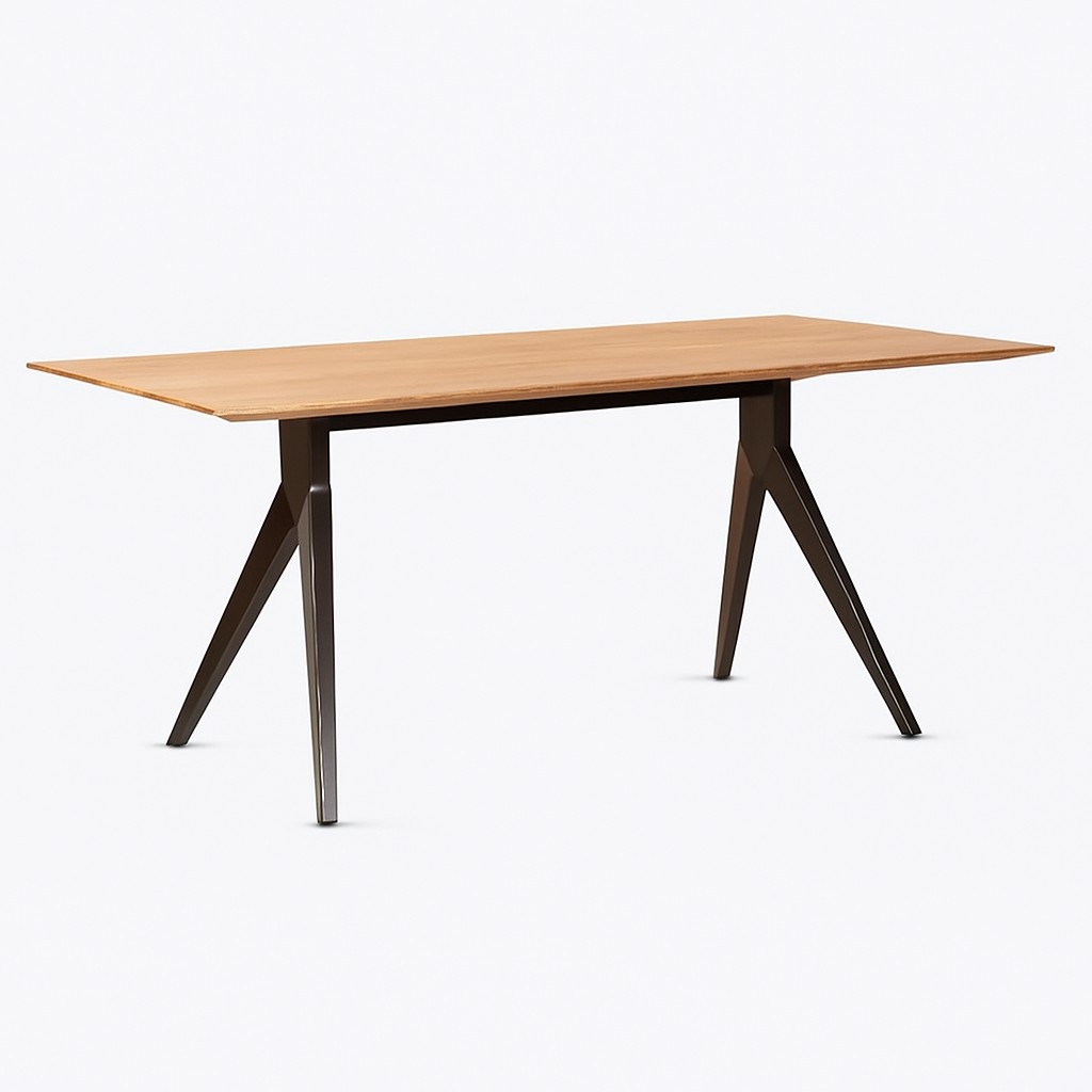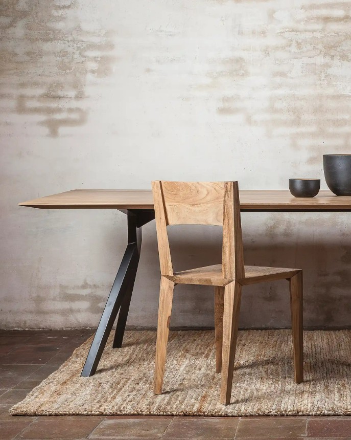 Mesa de comedor Majesti de madera de teca reciclada y hierro 240 x 100 x 76 cm. Majesti se distingue por su diseño que combina robustez y ligereza visual. Las piezas de esta colección presentan sobres de madera de teca reciclada con un borde biselado que reduce visualmente su grosor, aportando una estética más esbelta. Las bases metálicas, con sus características patas en forma de V invertida, brindan estabilidad y un toque contemporáneo. La madera de teca reciclada utilizada en su fabricación proviene de antiguas construcciones en desuso, reflejando el compromiso de dareels con la sostenibilidad y el respeto por el medio ambiente.