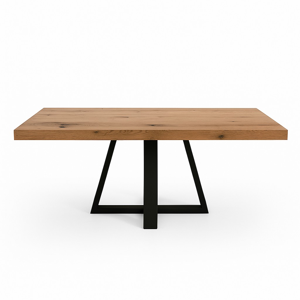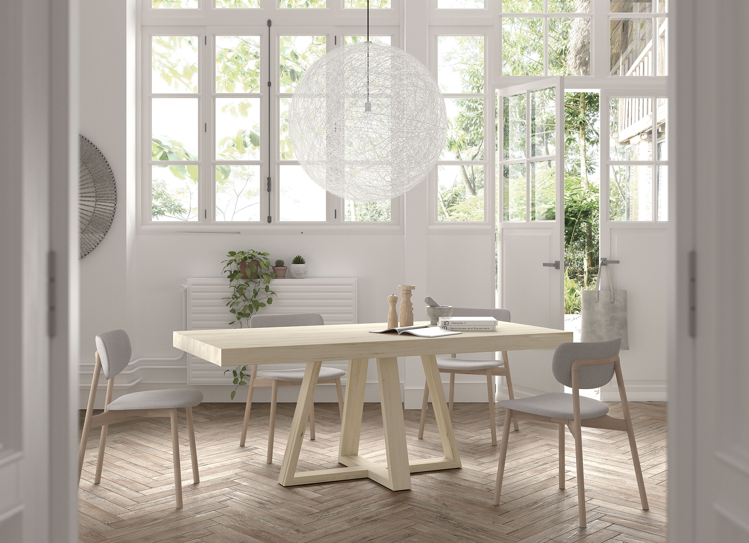 La mesa de comedor fija Mallorca, combina elegancia contemporánea y funcionalidad. Su diseño destaca por una tapa de melamina de 8 cm de grosor y una estructura metálica en forma de cruz, aportando solidez y estilo.